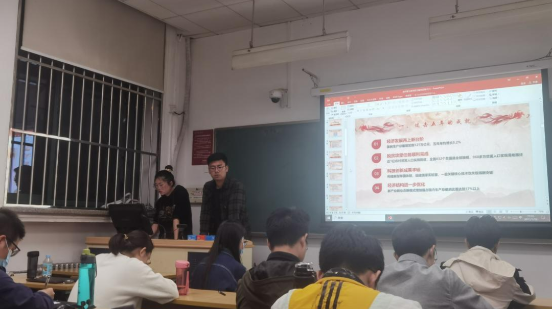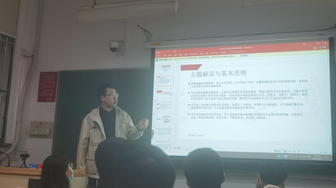 为深入学习领会党的二十届二中全会精神和全国两会精神,筑牢理想信念,提高理论素养,提升党员队伍凝聚力,2023年3月29日晚,h视频 本科第三党支部以“思想照耀奋进之路,理论指导实践新章”为主题于公共教学二楼2112教室开展主题党日活动。会议由本科第三党支部书记祝婧媛主持,支部全体成员参会。