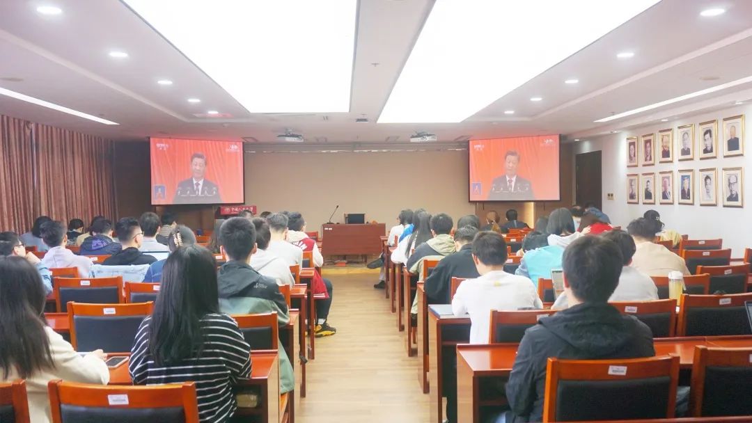 h视频 党委组织全院师生观看开幕式直播。学院党政领导班子成员与师生代表在明德主楼728会议室和国学院228教室观看现场直播,各党支部、团支部、班级组织线上观看“党的二十大”会议直播。