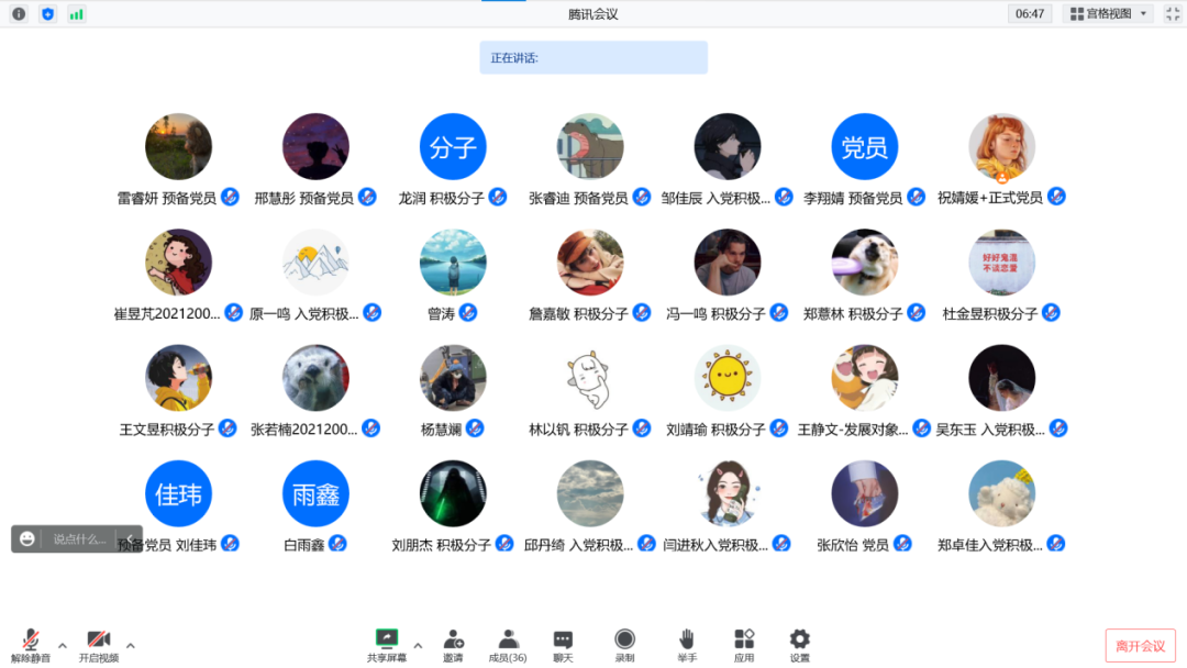 为深入学习贯彻习近平新时代中国特色社会主义思想,深刻认识学校第十五次党代会的重大意义,切实增强党员责任感和使命感,喜迎党的二十大胜利召开,h视频 本科第三党支部于2022年10月15日晚开展主题党日活动,线上集体学习研讨学校第十五次党代会精神,并为第二天观看党的二十大开幕式直播做好充分准备。本科第三党支部全体成员参会,部分入党积极分子参加活动,会议由h视频 本科第三党支部书记祝婧媛主持,孟博远记录。