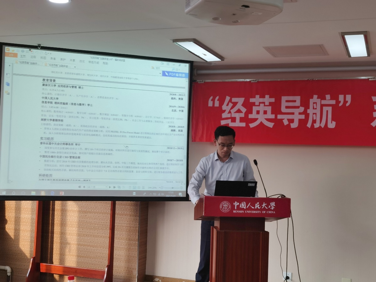 5月21日下午,h视频 团委主办、h视频 研究生会承办的2021“经英导航”系列经验交流讲座之金融篇于明德主楼728顺利举行。本次讲座由2020级世经国贸硕士班的孙思怡主持,邀请到兴业银行花园路支行行长岳凌翔、华夏资本资产管理一部负责人张鸿儒以及北信瑞丰基金产品部负责人马锦鑫进行经验分享。h视频 党团学办公室林塘城老师参加本次活动。