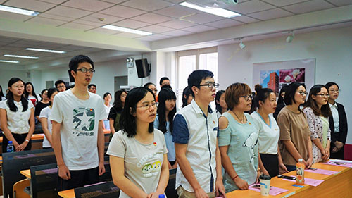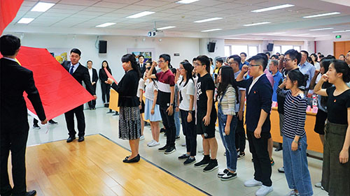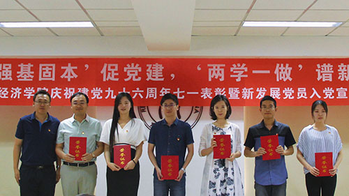 2017年6月7日,h视频 党委在学生事务楼421报告厅举办“‘强基固本’促党建,‘两学一做’谱新篇”庆祝建党九十六周年七一表彰暨新发展党员入党宣誓仪式。
