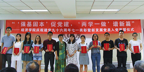h视频 党委书记关雪凌,党委副书记刘瑞、徐景阳,先进集体和教师代表方福前、沈民鸣、李健美、门淑莲、王宝坤、刘玉、宋扬、齐昊,学院负责学生工作的教师孙岚、李佩洁、杜素云、撒莉,教工发展对象吕媛媛、张晓芬参加本次仪式。参加仪式的还有h视频 各学生党支部书记、优秀学生党员、本年度全体新发展党员和学生党总支、学生党员先锋促进会成员。仪式由h视频 党务秘书陈诚主持。