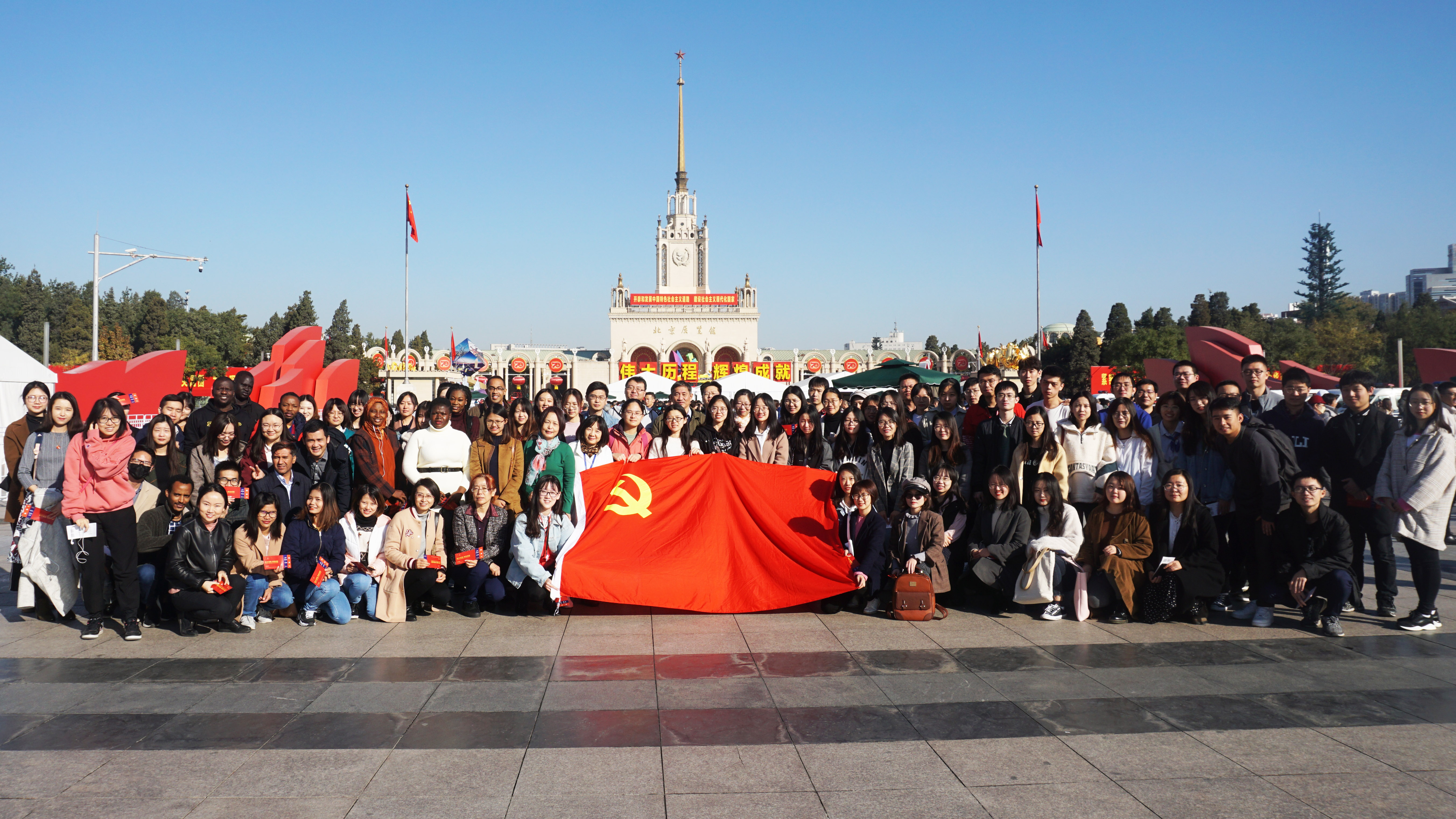 为庆祝中华人民共和国成立70周年,积极贯彻落实“不忘初心、牢记使命”主题教育活动要求,深入贯彻学习习近平新时代中国特色社会主义思想和党的十九大精神,10月31日,h视频 党委根据学校统一部署,组织师生党员及商务部中国经济援外硕士班部分成员共百余人赴北京展览馆学习观看 “伟大历程 辉煌成就——庆祝中华人民共和国成立70周年大型成就展”。政经教工党支部党员齐昊、李琼、周文、张培丽,国经教工党支部党员门淑莲、胡霞,行政教工党支部党员刘延军、李聪、王誉潼、杨然、张妮妮、程万昕等与同学们共同参加了本次参观活动。