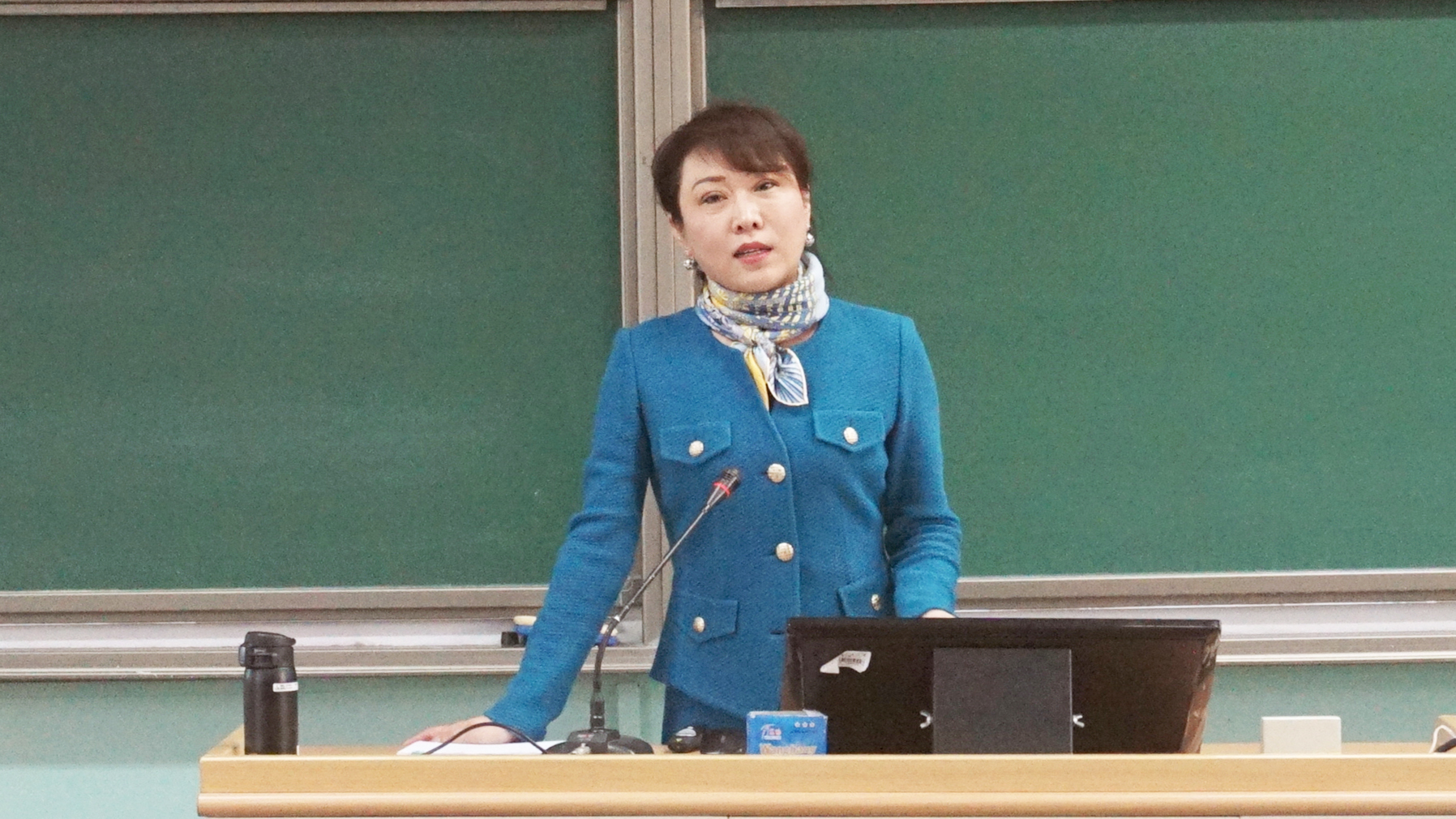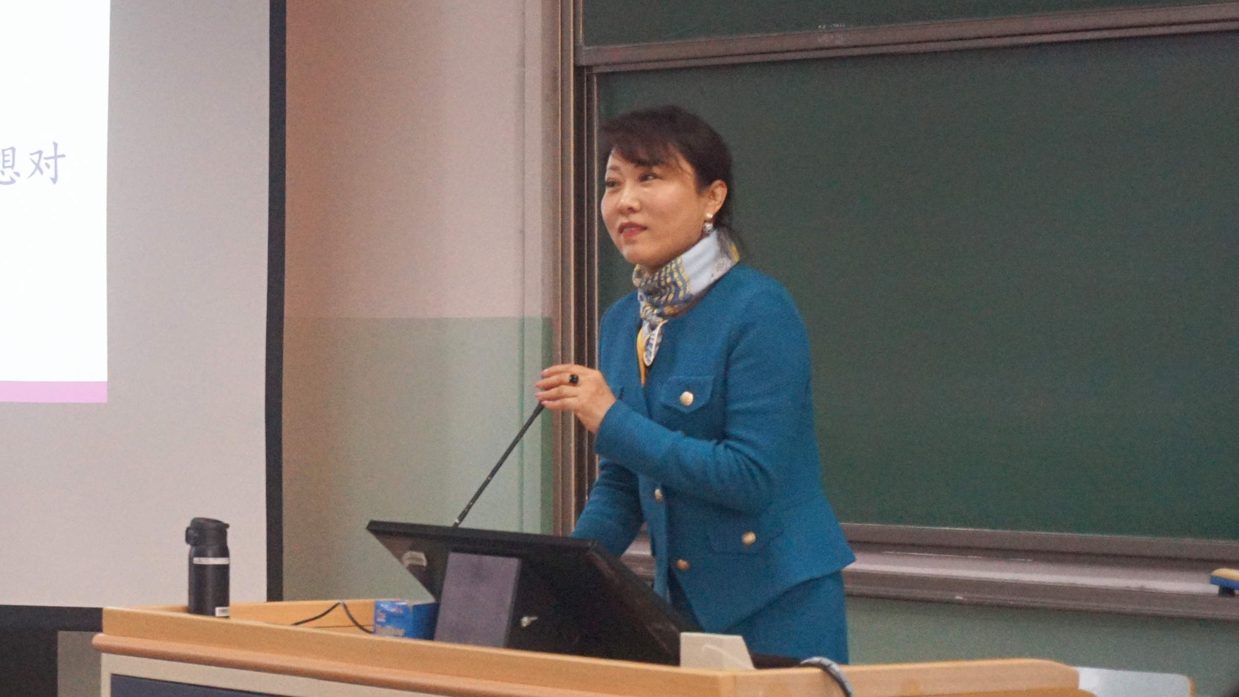 首先,关雪凌教授回忆了自己在人大的学习和工作经历,并指出,在中国改革开放四十周年之际,在中国经济快速发展、国际地位逐步提高的时代背景下,我们当代大学生更应该了解学习党的方针政策,透视国际大局,做到“胸怀祖国,放眼世界”。