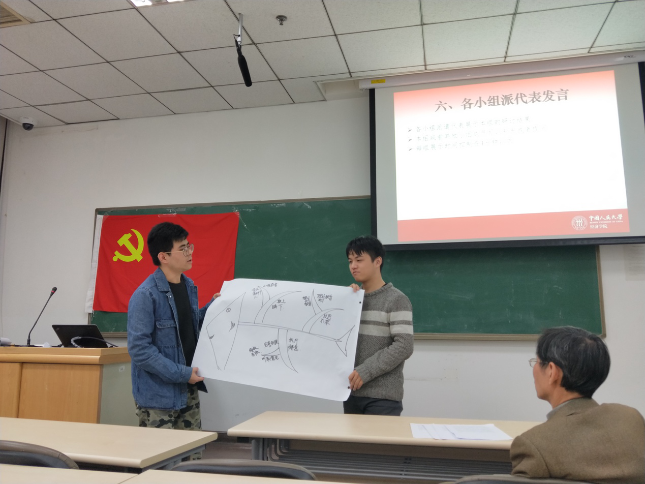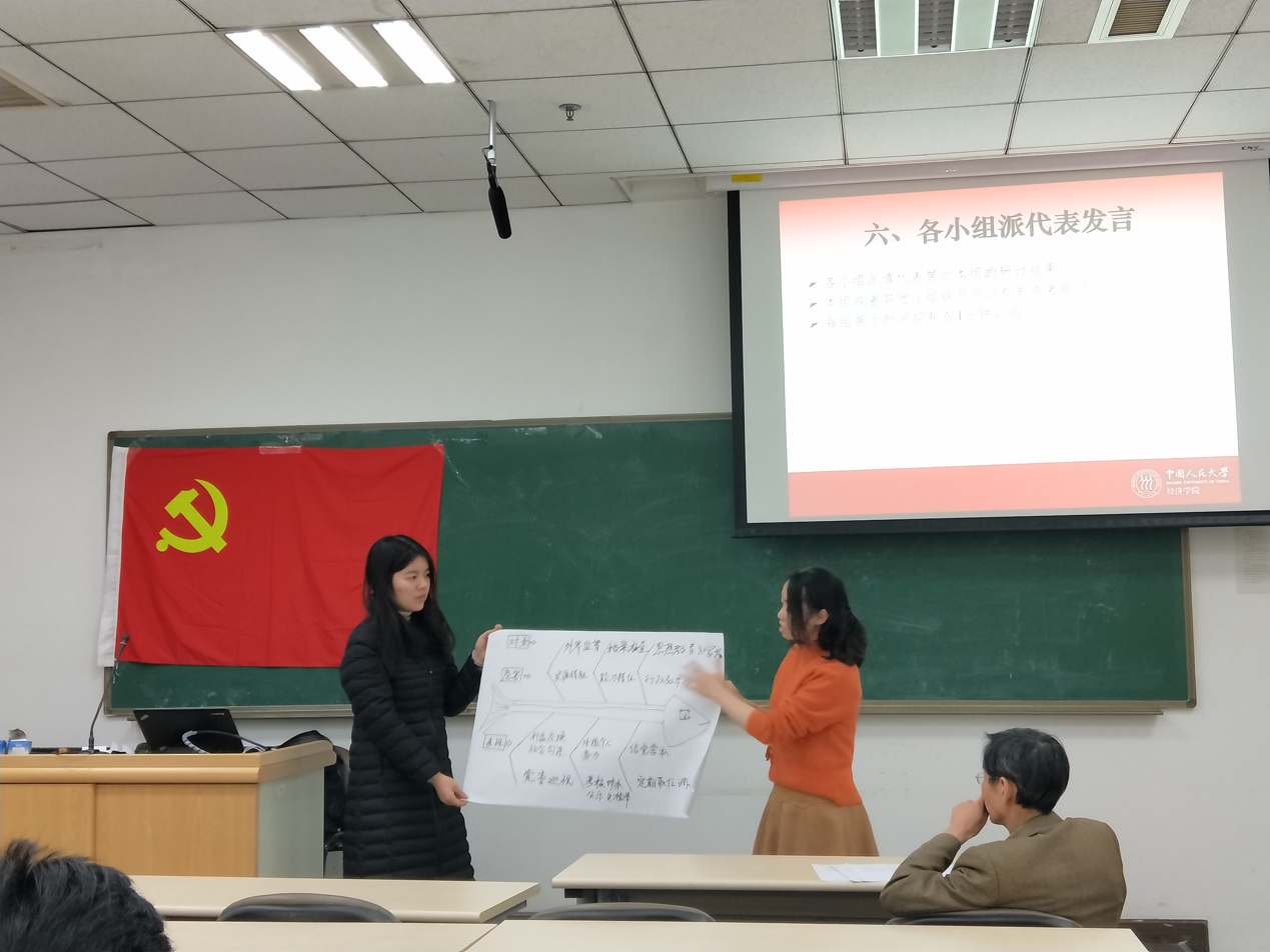 小组展示后,韩玉军教授进行点评。韩老师认为本次活动探讨的四个问题具有现实意义。他提出党员要统一认识,统一思想,坚守党的优良传统。韩老师结合自身调研经历,对支部成员提出建议,希望支部成员提高团队协作能力,凝聚集体智慧,学会表达和沟通。