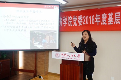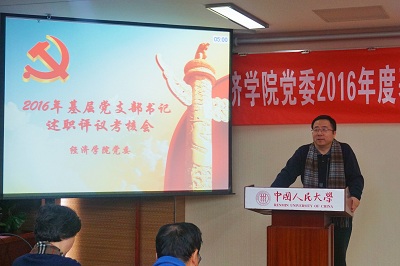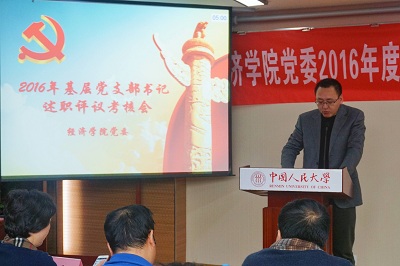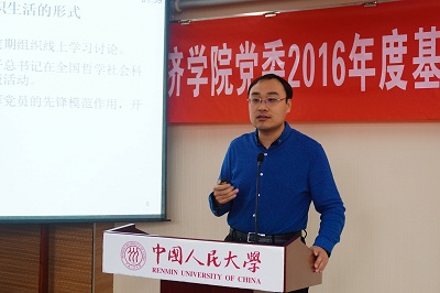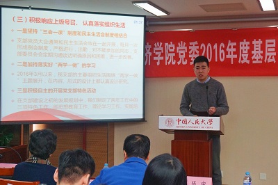 h视频 党委书记关雪凌、院长张宇、党委副书记刘瑞、副院长陈彦斌及学院党委委员方芳、杨达伟、金乐琴出席本次会议。h视频 46名基层党支部书记、支部委员及党员代表参加本次会议,会议由h视频 党委副书记徐景阳主持。