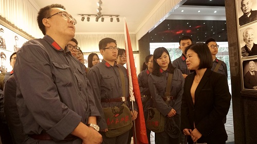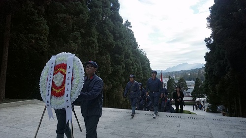 1111日下午,学员们抵达井冈山,并统一着红军服,举行了简短的开班仪式。仪式过后,学员们前往井冈山革命烈士陵园。“青山一旦埋忠骨,史册千秋铸英名”,工农红军在井冈山上的革命斗争伴随着极为惨烈的牺牲,在短短两年四个月时间里,一共有4.8万名战士献出宝贵生命。烈士们的身躯虽已长眠地下,但他们用鲜血浇灌的革命之花,用生命谱写的光昭千秋将长存人间。学员们向烈士公墓敬献花圈,瞻仰烈士英姿,重温入党誓词,传承井冈精神。