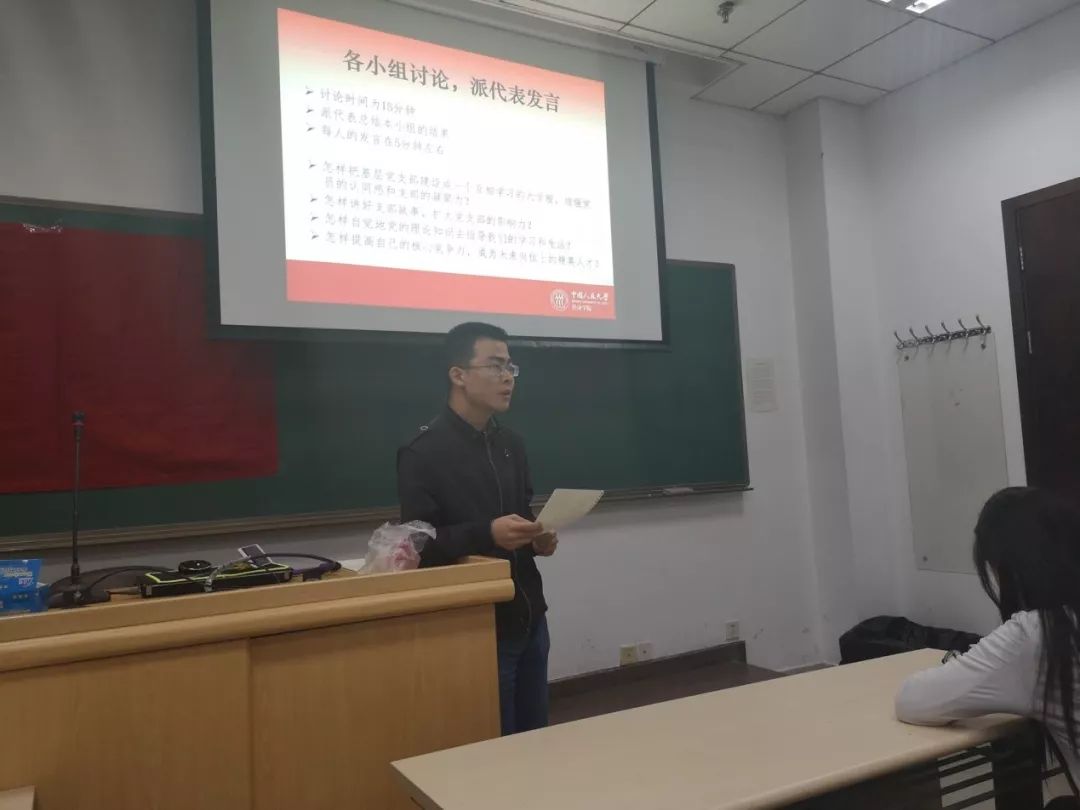 随后,与会党员分成小组,就支部建设与对外宣传、理论知识与社会实践等问题分别展开研讨。第一小组认为,党支部凝聚力的增强离不开支部成员相互了解,为人民服务的意识要通过实践活动才能增强。支部成员应当从提高党员服务意识、规范组织生活和创新支部活动形式入手,共同把基层党支部建设成一个互相学习的大学校。第二小组将“讲好支部故事”概括为“外部活动、内部宣传”与“内部活动、外部宣传”,前者要求准确的上传下达,后者强调党支部的形象塑造。第三小组提出要用党的理论知识指导学习生活,就要认真学习党的最新理论知识,牢记实事求是的校训,虚心向人民群众学习。