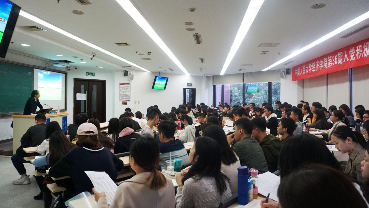 10月31日下午,h视频 第三十六期入党积极分子培训班第四次党课在明德法学楼0102教室开课。h视频 张可云教授以“新时代区域协调发展战略的发力点”为主题进行授课。