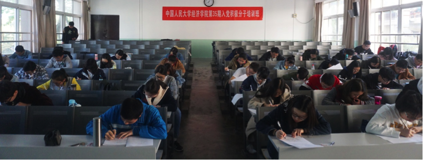 4月15日,学生党员先锋促进会组织第三十五期入党积极分子培训班全体学员参加结业考试。