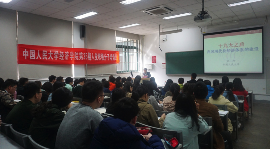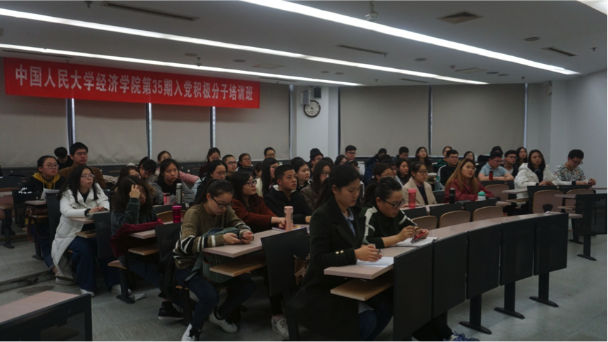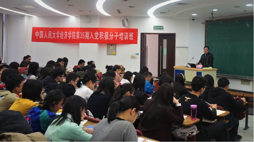 本期入党积极分子培训班包括党课教育三次,观影活动、微型党课竞赛活动、集体实践活动各一次,以小组为单位开展的实践活动七次,小组学习讨论会十余次,网上党校学习每人两学时。h视频 党委副书记刘瑞教授、马克思主义学院副院长张旭教授、h视频 邱海平教授应邀作为主讲嘉宾,为学员讲授党课。