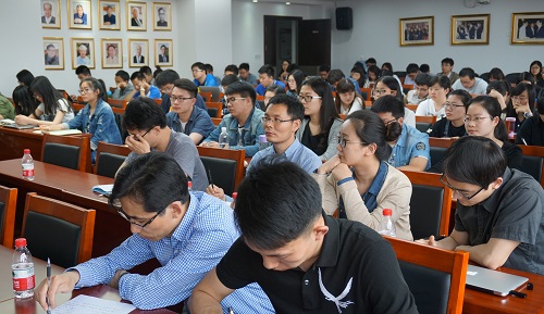 5月4日下午,h视频 党委举办“两学一做”专题党课,党委书记关雪凌教授做题为 严守党的政治纪律和政治规矩,做合格的共产党员的讲座。学院党委副书记徐景阳、全体青年教师党员、全体学生党支部党支书和学生党员先锋促进会成员共同学习并参与讨论。专题党课由党务秘书陈诚主持。