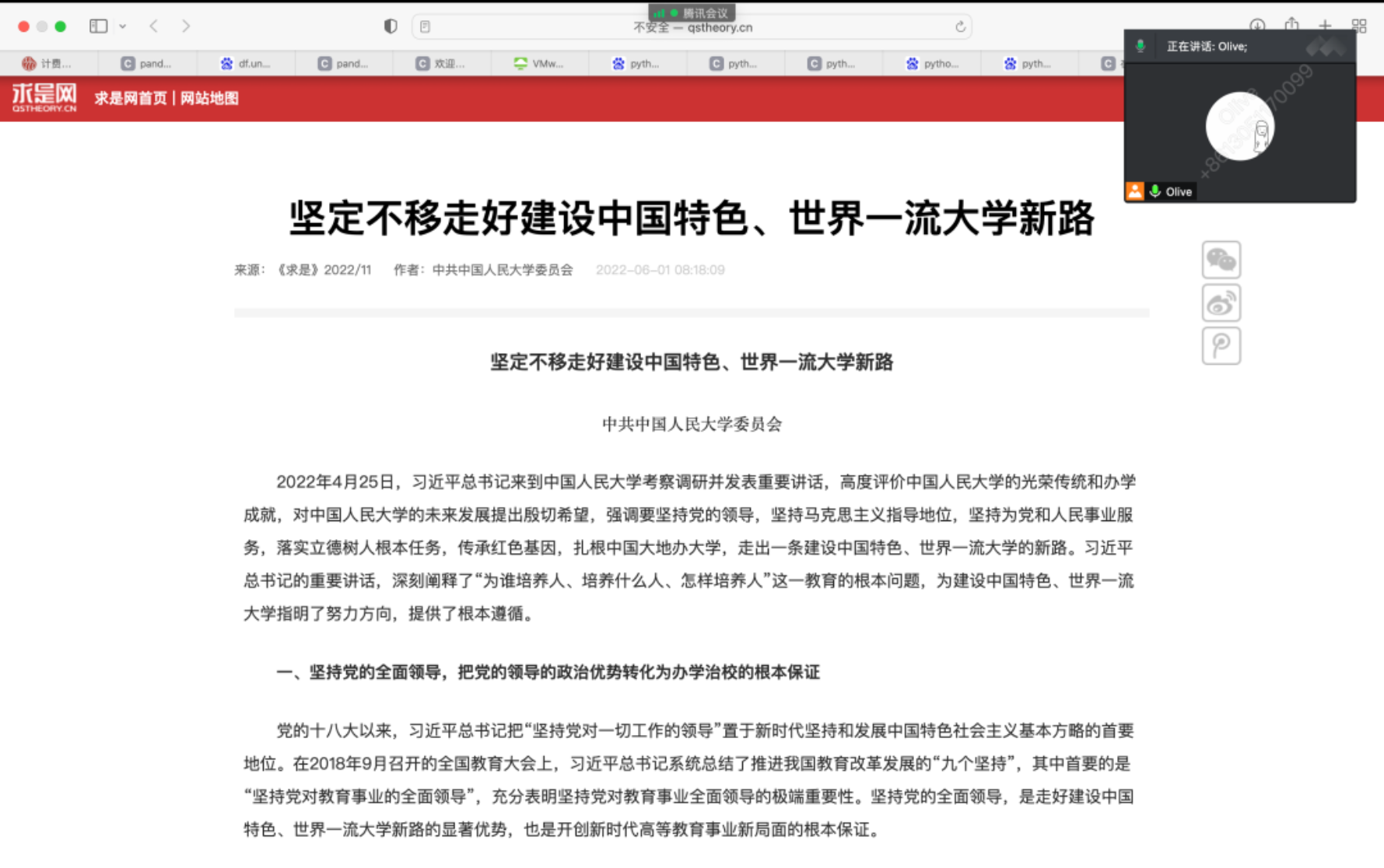 支部建设 | h视频 数量经济学、发展经济学硕士党支部学习《坚定不移走好建设中国特色、世界一流大学新路》