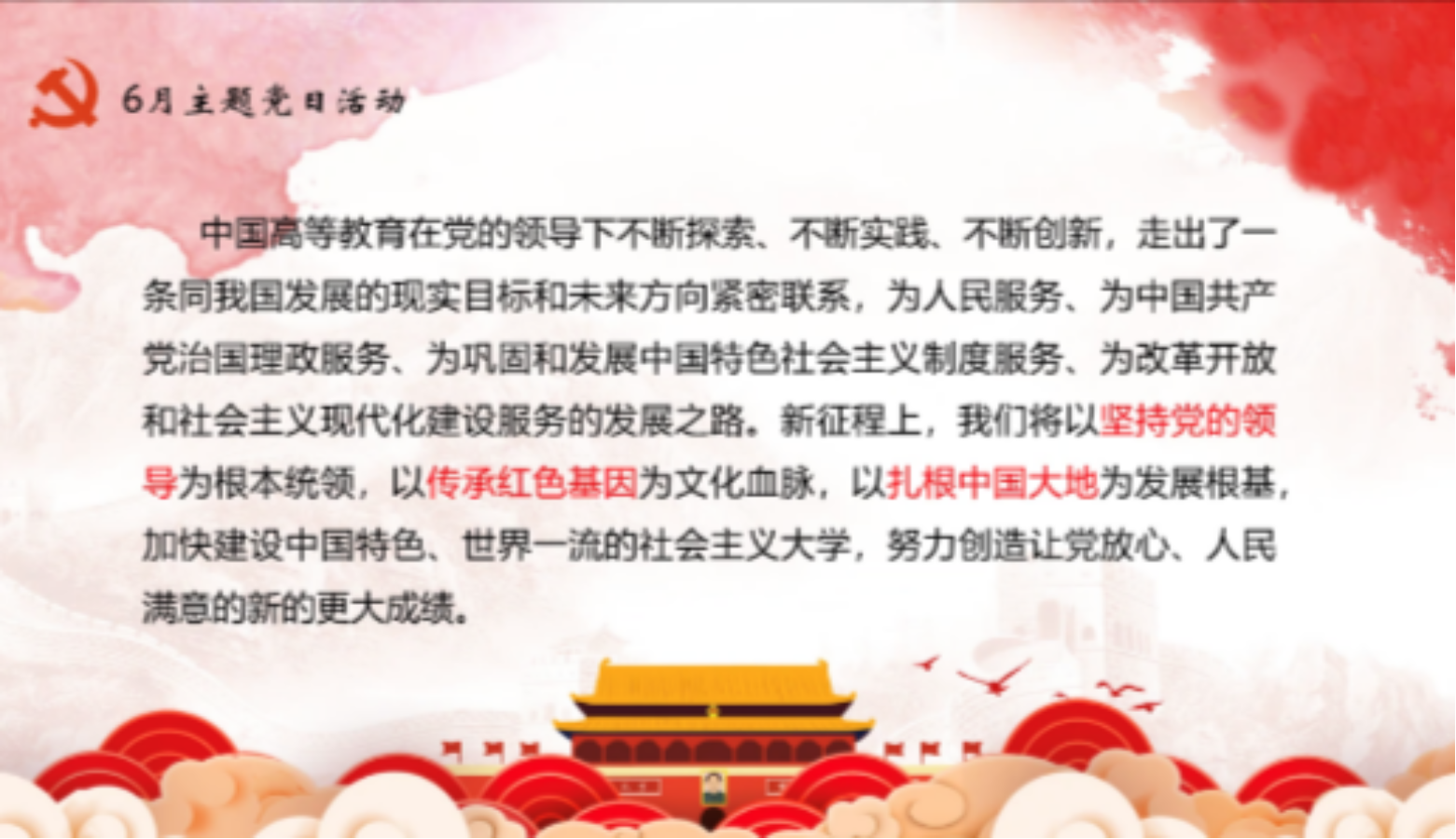 本次主题党日活动通过营造良好的学习贯彻氛围,将理论联系实际,深刻领悟坚持党的全面领导的极端重要性,深刻领悟传承红色基因的精神内核,深刻领悟扎根中国大地的重大意义,深刻领悟坚定教育自信的时代内涵,推动了学思用贯通、知信行统一,利于围绕责任使命凝聚共识,把握重点工作实干担当,不断开创工作新局面,以实际行动迎接党的二十大胜利召开。