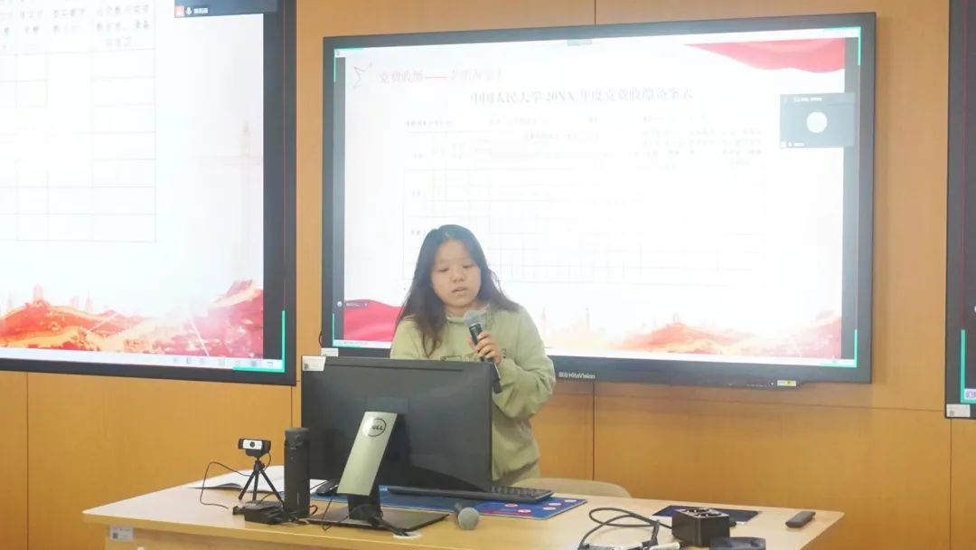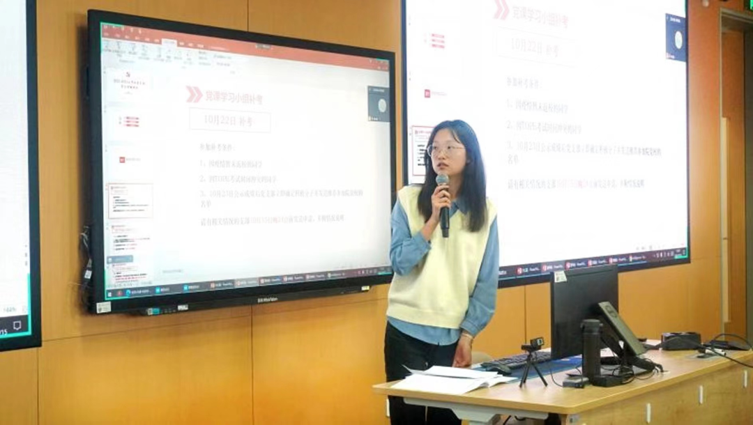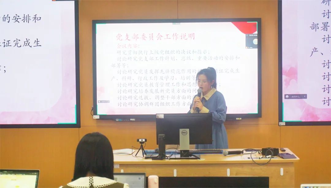 组织组组长吴涵介绍了发展党员的具体材料要求及第四十四期院党校相关安排,提醒各党支书把握重要时间节点,准确地向支部成员转达相关事宜。