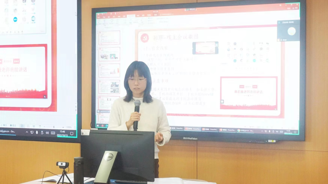 蒋莉薇领学中国共产党h视频 第十五次党员代表大会精神,学生党支部书记要不断提高政治判断力、政治领悟力、政治执行力,严守政治纪律和政治规矩,激励学生党员努力交出无愧于党、无愧于历史、无愧于时代、无愧于人民的优异答卷。此外,她对样板支部建设、会议记录及会议纪要的规范性进行讲解。