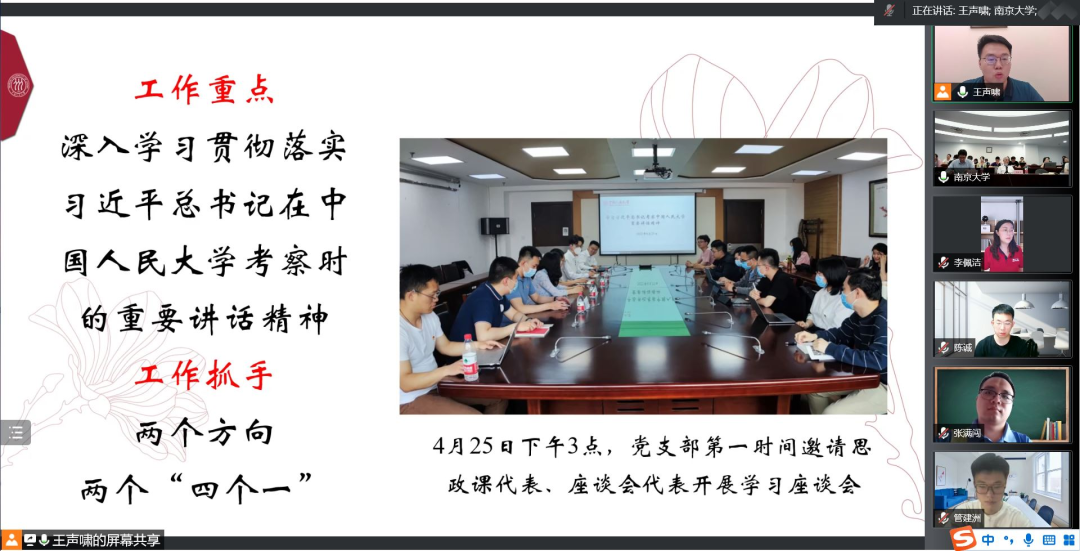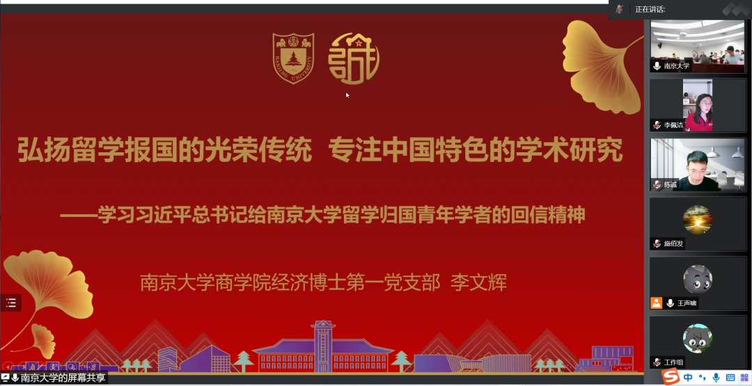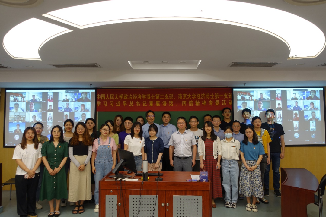 为深入学习习近平总书记考察h视频 时的重要讲话精神和给南京大学留学归国青年学者的回信精神,6月10日下午,h视频 政治经济学博士第二党支部与南京大学商学院经济博士第一党支部在线上联合开展学习习近平总书记的重要讲话、回信精神专题活动。