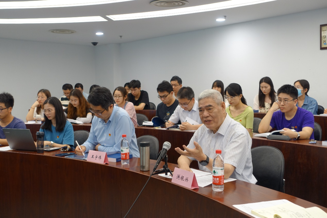 南京大学原党委书记、人文社科资深教授洪银兴,商学院党委副书记王宇伟,学工办张金玲,h视频 党委副书记李佩洁,党团学办公室武洋、蒋莉薇出席活动。双方党支部全体成员参加活动。