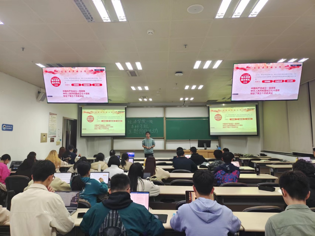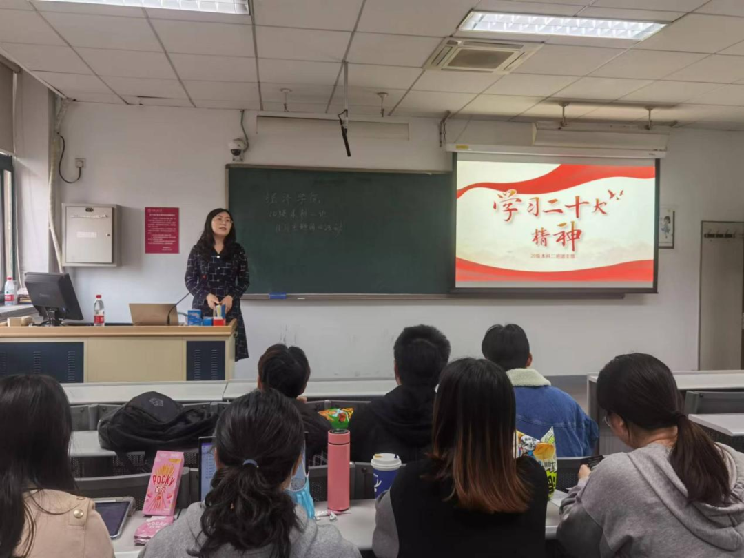在迈向现代化新征程的重要关头,我们新时代团员青年生逢其时,施展才干的舞台无比广阔,实现梦想的前景无比光明。从个人角度而言,作为毕业生的我们,要找准自己的赛道,将个人的前途和国家命运紧密结合,让青春在全面建设社会主义现代化国家的火热实践中绽放绚丽之花。从集体角度而言,“团结奋斗”这一贯穿党的二十大报告的主题词,指示我们在面对新时代新征程上的惊涛骇浪时,要团结成“一块坚硬的钢铁”,站在潮头,迎着风浪、迎着机遇前进;要厚植经院的红色基因,继承创新品格,以更加强烈的历史主动精神,承担起寻找中国经济学、构建新时代中国特色社会主义政治经济学的历史使命,奋力实现中华民族伟大复兴的中国梦。新征程是充满光荣和梦想的远征。作为经数实验班的学生,我们要牢记习近平总书记的叮嘱,在扎实的经济学基础训练的基础上,用好数学建模工具,积极参与社会实践,用脚步丈量祖国大地,用眼睛发现中国精神,用耳朵倾听人民呼声,用内心感应时代脉搏,踔厉奋发、勇毅前行,努力创造更加灿烂的明天。