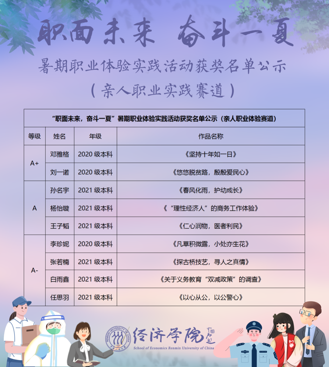 在这盛夏时节,经院学子的脚步遍及各方各地、各行各业,大家以己所学投身万里山河,用青春力量点燃实践火焰,用实际行动丈量祖国大地、发现中国精神、倾听人民呼声、感应时代脉搏。通过职业体验,同学们在实际工作中增长才干、练就本领,以真才实学服务人民群众,用学科视角打开观摩现实世界的窗口,探索各行各业的发展规律,在暑期第二课堂上好了一堂生动的劳动教育课。