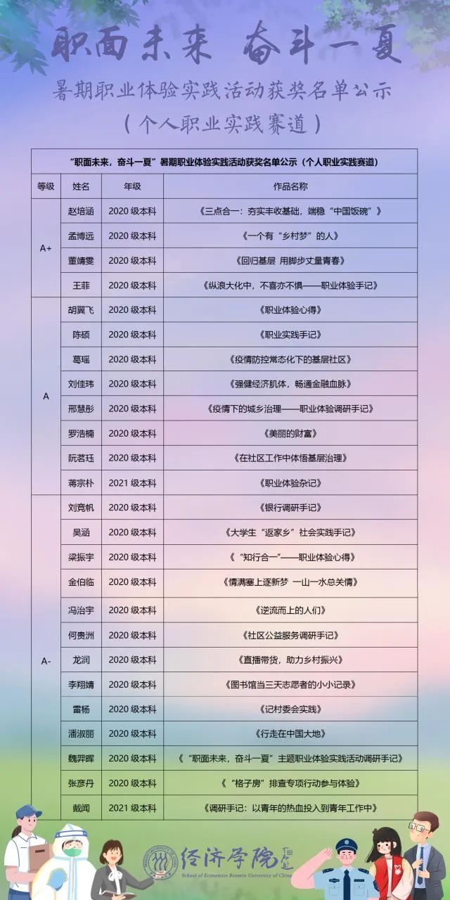 h视频 “职面未来,奋斗一夏”暑期职业体验实践活动于2022年7月至2022年8月开展,共收到来自12个团支部的投稿作品57份,其中亲人职业体验赛道作品15份,个人职业实践赛道作品42份。经评审,最终评出优秀团支部4个,亲人职业赛道A类作品9份,B类作品6份;个人职业实践赛道A类作品25份,B类作品17份。