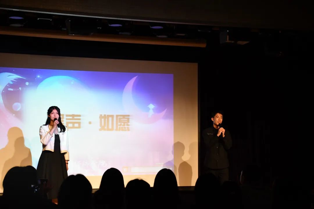 在主持人的带领下,8位同学踊跃参与到歌词飞花令的游戏中。各位选手强者交锋,不相上下,比赛一度进入白热化状态。最终,高跃玮同学以强大的歌曲积累取得游戏冠军。