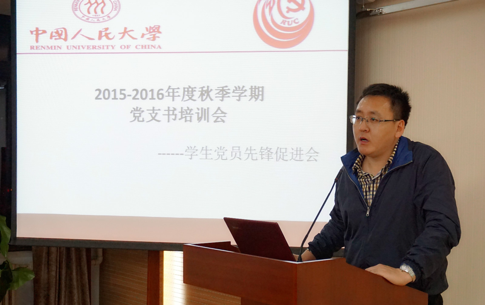 12月11日晚,h视频 学生党员先锋促进会在明主728会议室组织召开了2015-2016年度秋季学期党支书培训会,h视频 分党委副书记徐景阳老师出席本次会议并发表讲话,全体学生党支部书记参加了本次会议,会议由学生党总支常务副书记、先锋促进会会长冯朔主持。