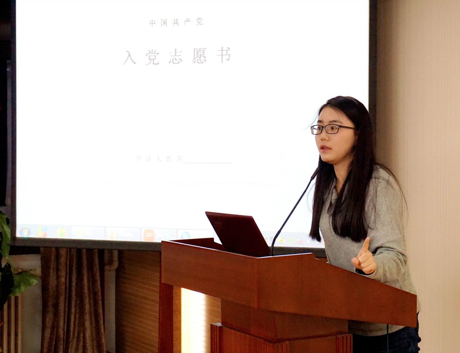 在会议的第二部分,h视频 学生党总支组织委员陈思润就《入党志愿书》的填写进行了细致的说明,为各位党支书讲解了填写《入党志愿书》的步骤及要注意的细节,强调《入党志愿书》的填写作为入党的重要环节,填写过程务必要保证规范性、全面性、真实性。各位党支书要做到严肃对待,严格把关。