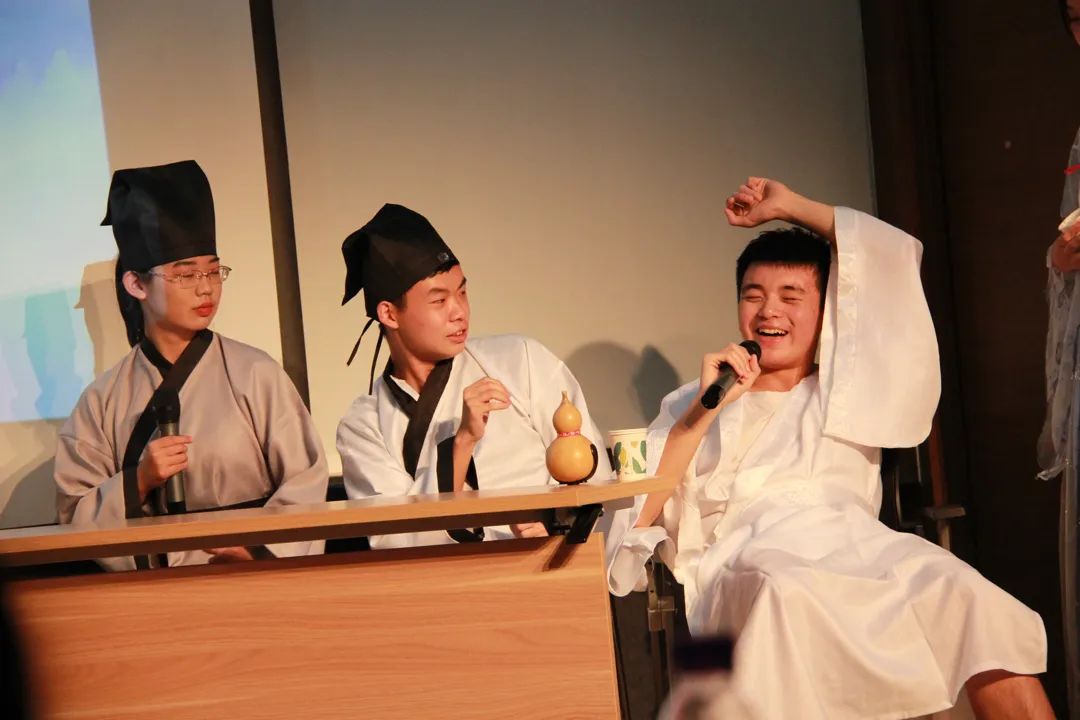 得知新生晚会要准备班级集体节目的时候,基于我在高中时就原创过一些“晚会型”搞笑小品的经历,作为文体委员的我第一个想到的就是准备一个小品。于是我便和报名参演的同学构思起了点子。晚会恰好在中秋节,我就拈来了好几个与月亮相关的历史人物写进剧本:李白、苏轼、嫦娥、玉兔……虽然内容是“大乱炖”,但经过多日在藏书馆研讨室进行这个节目的排练,我们最终收获了很好的节目效果。参与排练与演出的大家都辛苦了~