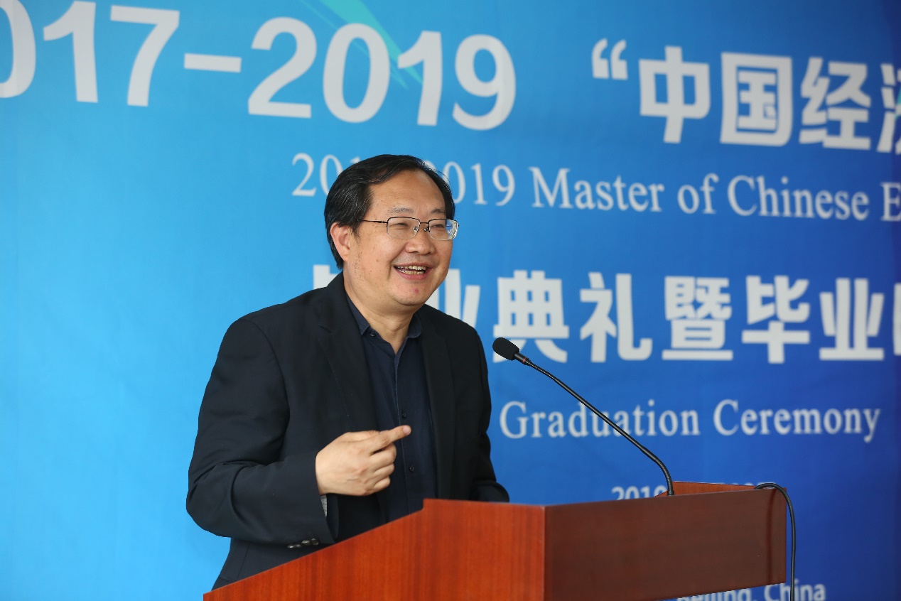 典礼伊始,李佩洁老师首先向各位嘉宾表示了热烈的欢迎,并祝贺各位同学顺利取得硕士学位。接下来h视频 党委书记兼院长刘守英教授进行致辞。刘守英教授通过讲述自己的三段经历,展现了中国从一个不受重视的国家发展为现在的世界强国的过程,强调了改革开放的重要意义,希望各位学员能从中国经济腾飞的经验中有所启迪,并将所学知识带回本国,成为自己祖国经济建设栋梁之材。最后,刘守英教授表示,h视频 不仅是是各位学员的母校,也是永远的家。