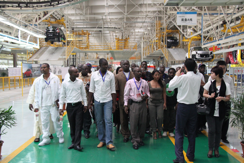 5月27日上午,研修班官员一行赴安徽知名企业——江淮汽车股份有限公司参观考察。在该集团国际公司副总经理张鹏的陪同下,非洲各国官员参观了江淮汽车集团的轿车、商务车、重型卡车等五条生产线。非洲各国官员还饶有兴趣的试乘了多种车型,并对江淮汽车的优良生产工艺表示了赞许。参观结束后,研修班官员一行与江淮汽车集团国际公司相关负责人进行了座谈。该集团国际公司商用车部区域经理夏润斌、销售经理徐峰、销售主管曾浪等参加。当日晚,夏润斌经理又与尼日利亚和埃塞俄比亚两国官员进行了单独会谈。双方初步商定江淮汽车集团代表团于今年8月份访问非洲,调查市场情况。尼、埃两国官员表示将负责接待工作,并联系国内进口商,组织双方会谈,举办展销会,进一步增进非洲消费者对中国汽车的了解。