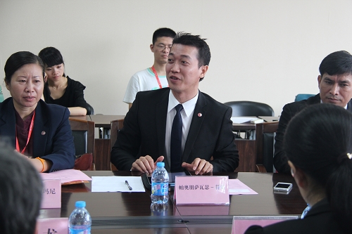 8月14日上午,由国家商务部主办、h视频 承办的2013年《亚太贸易协定》研修班开班仪式在h视频 明德主楼729会议室举行。h视频 院长杨瑞龙教授出席开班仪式并致辞。共有来自老挝、柬埔寨、巴新、斯里兰卡和阿塞拜疆的19名政府官员参加此次研修班。开班仪式由h视频 副党委书记丁凯副教授主持。