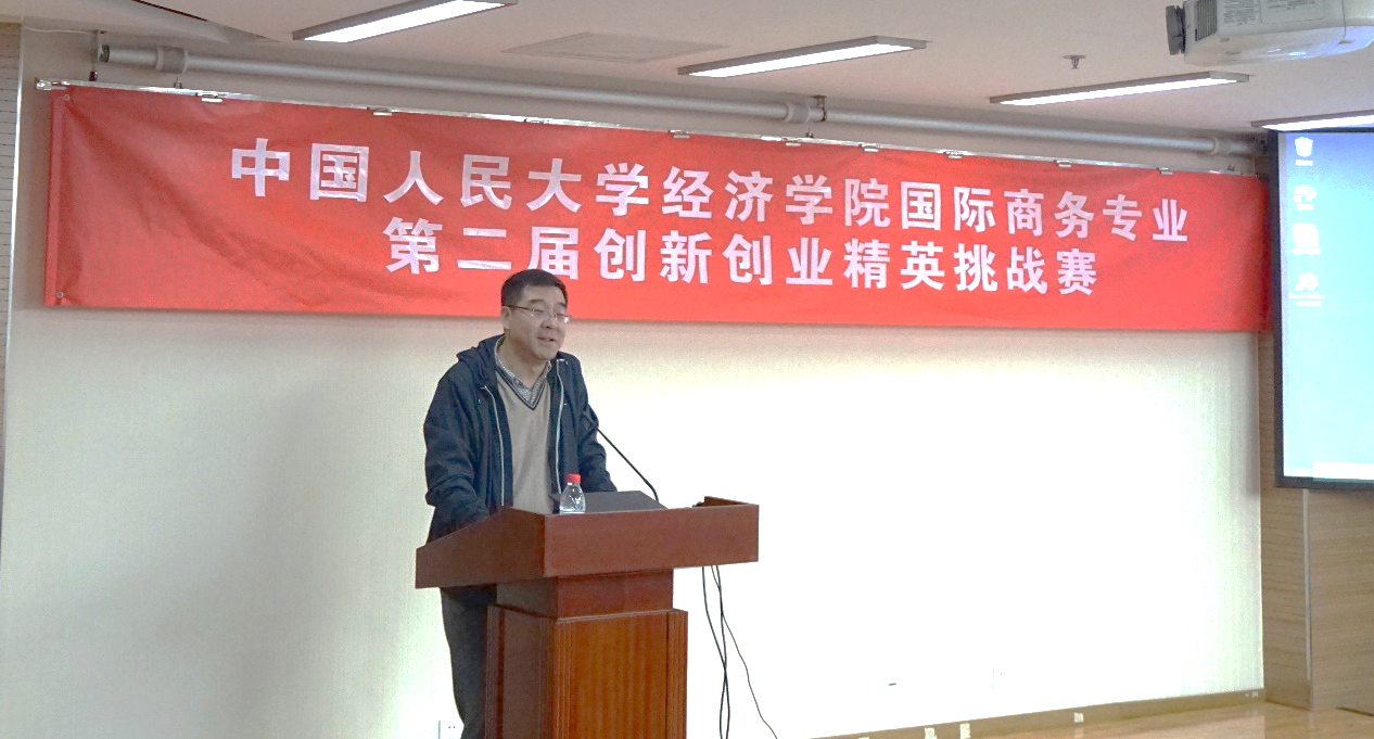 大赛伊始,h视频 党委常务副书记兼副院长王晋斌教授发表了致辞,王院长对老师们及校外嘉宾牺牲周末休息时间来做本次比赛的评委表示感谢王老师也谈了对创新创业挑战赛的理解,他结合自身的经历,强调了本次比赛的重要性,认为案例背后都是需要理论支持的。讲到对国商的期望时,王老师认为应更加重视国际商务专业,并应该扩大创新创业挑战赛的规模。随后,国际商务项目主任程大为教授宣布比赛正式开始。