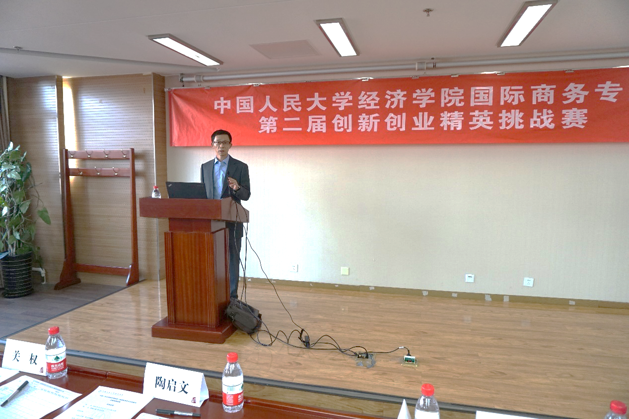 程大为老师邀请陶启文先生对本次比赛进行总结先生说,很荣幸站在这里发言,昨天刚聘任成为校外导师,再次看到自己的老师感觉十分亲切。他希望同学们做到不忘初心,牢记使命,将东门校训实事求是牢记在心,牢记要让人大为我骄傲初心明德求是,经商济世初心。同时对各位老师提出关于项目标准的建议,要建立国际商务专业的特色,不能仅仅是严进宽出最后陶先生对同学们提出了一些要求,整个案例采集的分析上,需要做到求真务实,去伪存真,做案例分析要有线索,要有基本的分析能力,要利用好文理搭配的优势,进行思维碰撞才能产生火花,做出更深入思辨独创的案例分析