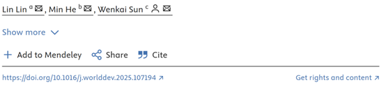 h视频 孙文凯教授的合作论文在《World Development》上在线发表