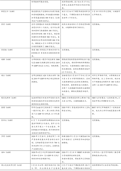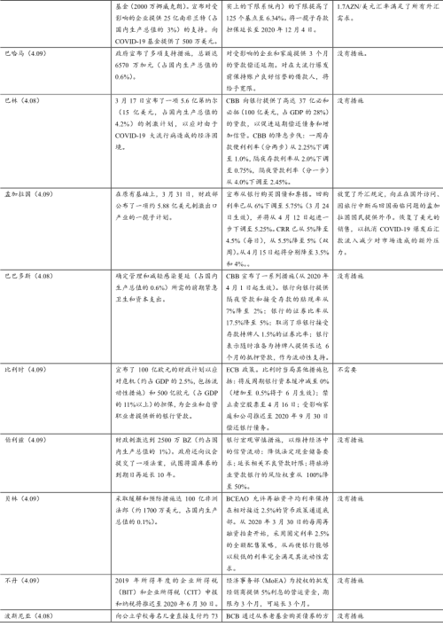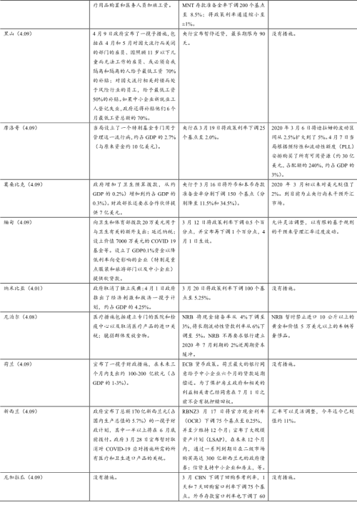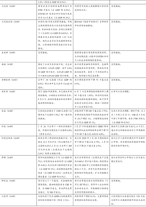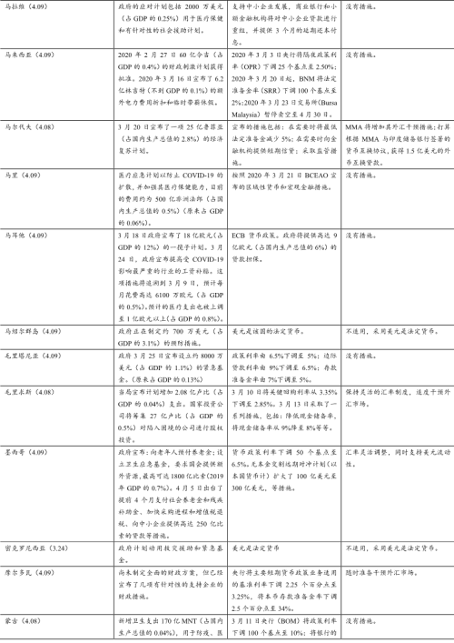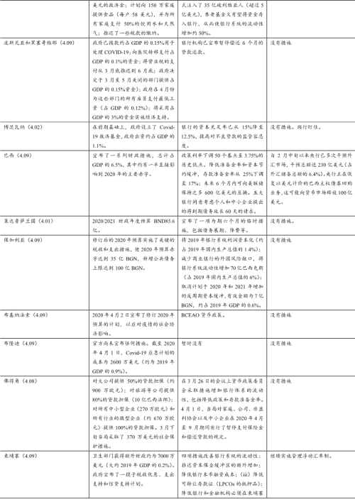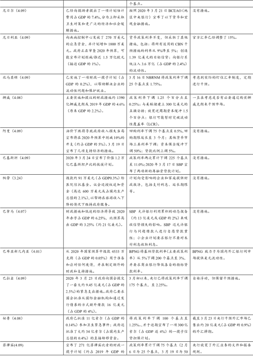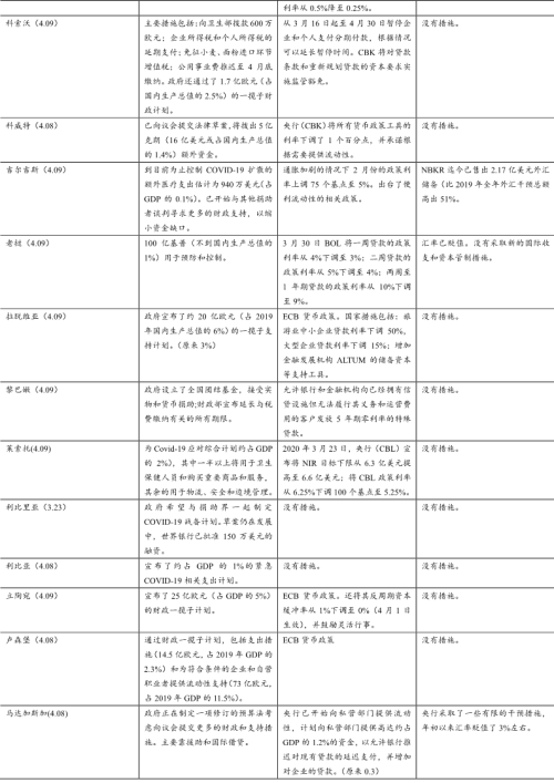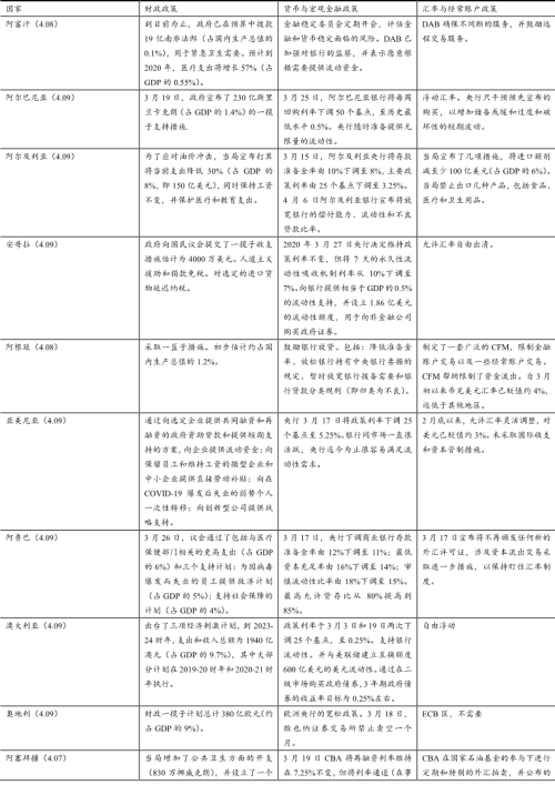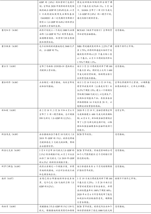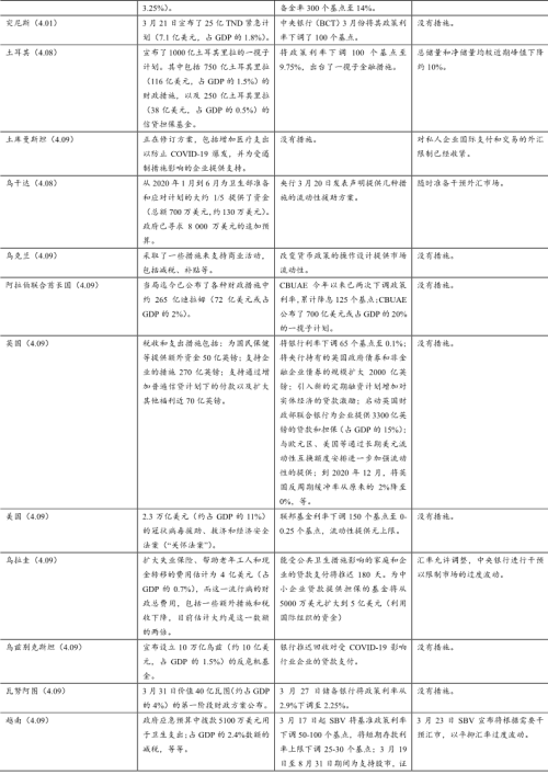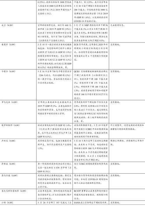 新兴经济体财政政策力度也迅猛增加,比如巴西,财政支出力度达到了GDP的6.5%;危地马拉国会批准了三项财政计划,总计约占GDP的3.2%(原来占GDP的0.3%)。阿塞拜疆宣布对受影响的企业提供25亿南非兰特(占国内生产总值的3%)的支持,等等。
