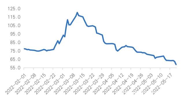 除此之外,俄罗斯经济变化中最令人瞩目的亮点是卢布汇率的变化。在西方金融制裁的最初冲击下,卢布汇率起先出现了剧烈贬值,从冲突之前的约1美元兑换75卢布一度下跌至1美元兑换120卢布。在卢布支付令生效后,卢布汇率持续升值。4月份,卢布兑美元的名义汇率上涨了33.3%,对欧元上涨了35.4%。截至5月21号已经升值到1美元兑换59卢布,甚至比俄乌冲突之前升值超过20%。另外根据俄罗斯央行的通报,据初步估计卢布的实际有效汇率(对俄罗斯主要贸易伙伴的货币)在2022年1月至4月期间增长了4.3%。单在4月份,卢布兑美元的实际汇率就比上月上涨了34.6%。