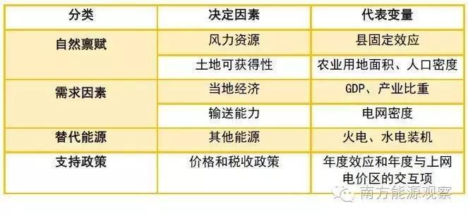 表2 影响风力发电盈利能力和代表变量的决定因素