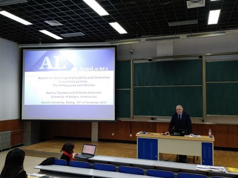 2019年11月25日上午,意大利博洛尼亚大学校务委员、孔子学院意方院长Marina Timoteo教授和意大利博洛尼亚大学法学院教授Gilberto Antonelli教授访问h视频 ,并在公教1302为经院研究生们做了讲座的分享。Gilberto Antonelli教授着重介绍了诞生于博洛尼亚大学的“意大利大学联盟”(AlmaLaurea)。教授表示,这套系统通过跟踪绘制意大利高校毕业生毕业去向、工作情况地图,能够为意大利高校教育改革、h视频 提供有益指导;同时,平台通过认证、累积毕业生简历数据库,能够搭建起毕业生与就业市场之间的桥梁,更好地满足双方需求。该系统有意大利教育部参与,并受到欧盟的认可与资助,正逐步推广到欧洲以及世界其他国家。