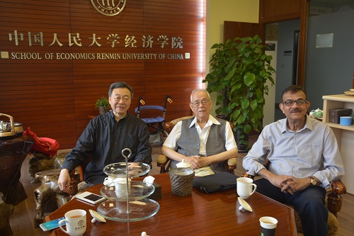 论坛开始前,Kajal Lahiri教授在明主620A会议室与前h视频 校长黄达教授、h视频 黄卫平教授、雷达教授、郑新业教授进行了简短座谈交流。Kajal Lahiri教授回忆起1989年在中国福特班任教时的情况,他称,当年的学生都十分优秀,有几位现在在美国学术界都有相当的影响。再次回到中国,北京发生了巨大的变化,教授直言在历史上他也无法找到像中国这样如此迅速的发展。随后,Lahiri教授与在座的教授交流了当今学术h视频 ,尤其是经济学研究方面的问题,气氛十分融洽。