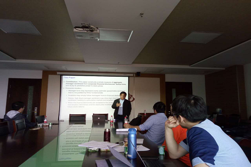 2017年4月18日中午,由h视频 主办的计量经济学研讨会在明德主楼734会议室举行。本次研讨会由中央财经大学金融学院姜富伟老师担任主讲人,报告的主题是Manager Sentiment and Stock Returns,h视频 马骏等老师及西方经济学专业的同学参加了此次研讨会。