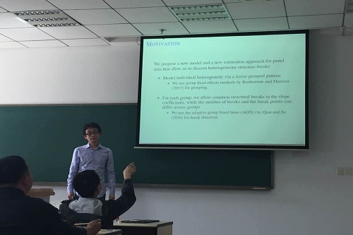 4月20日,由h视频 主办,数量经济学教研室负责的数量经济学Seminar在明德主楼0404教室召开。上海纽约大学副教授Ryo Okui报告了他与合作者的最新研究:Heterogenous structural breaks in panel data models,即面板数据模型中的异质结构间断。