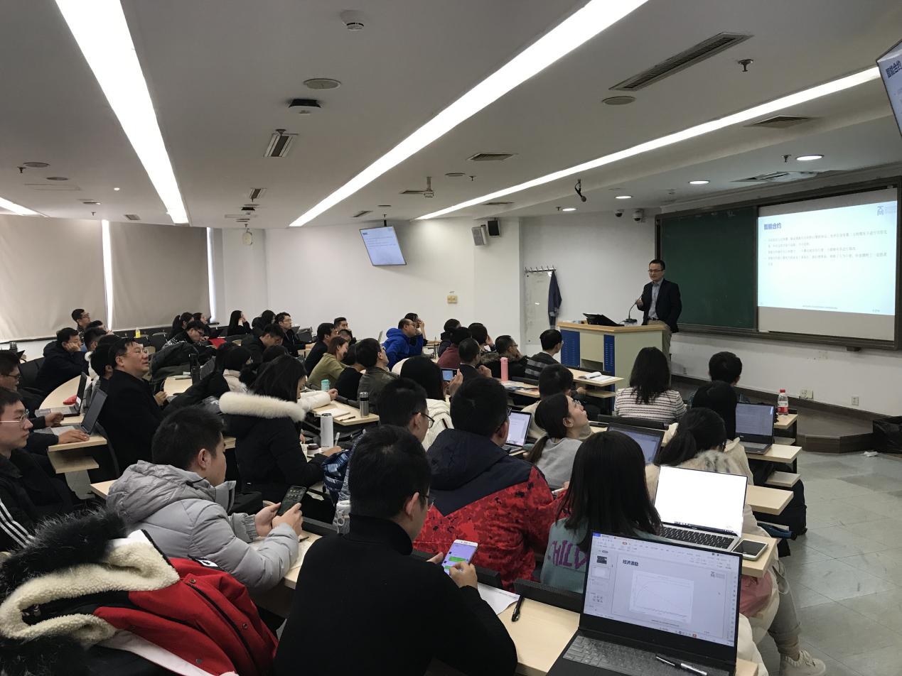 邹老师首先从区块链的基本概念和运行方式讲起。为了便于理解,邹老师创造性地借用史书的编写来对照分布式账本。此后,邹老师相继用通俗易懂的语言解释了区块链领域的热词,例如“哈希函数”、“公钥私钥”、“挖矿”、“共识算法与智能合约”。在同学们对区块链有基本的了解的情况下,邹老师继续介绍区块链技术目前的应用领域,包括物联网、智能制造、供应链金融、数字金融等领域。尤其是作为共享账本,有助于缓解经济活动参与者之间的信息不对称,提高他们分工协作的效率,是目前最广泛的应用方式,在精准扶贫、医疗健康、食品安全、公益和社会救助等方面都可以提供有效的帮助。