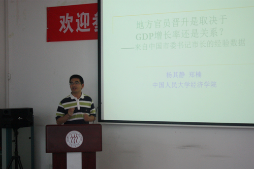 研讨会的最后一个单元是当天下午的全体会议(A2),由h视频 企业与组织研究中心执行主任、h视频 教授杨其静主持。围绕“官员晋升”这一主题,中山大学岭南学院教授徐现祥、人大h视频 教授杨其静、北大国家发展研究院张牧扬分别从地市级官员的政绩、地区贸易保护以及地市级官员的个人特征等角度展开了丰富的讨论,引发了听众的热议。最后,江西财经大学h视频 教授周海鸥博士以民营企业家的政治待遇为例分析了动态经济增长的机制。