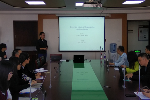 10月13日,由h视频 和h视频 企业与组织研究中心(CFOS)共同主办的2017年第七期组织经济学Seminar在明德主楼729会议室召开。厦门大学h视频 李锴助理教授做了主题为“实证产业组织的结构模型方法”的报告。
