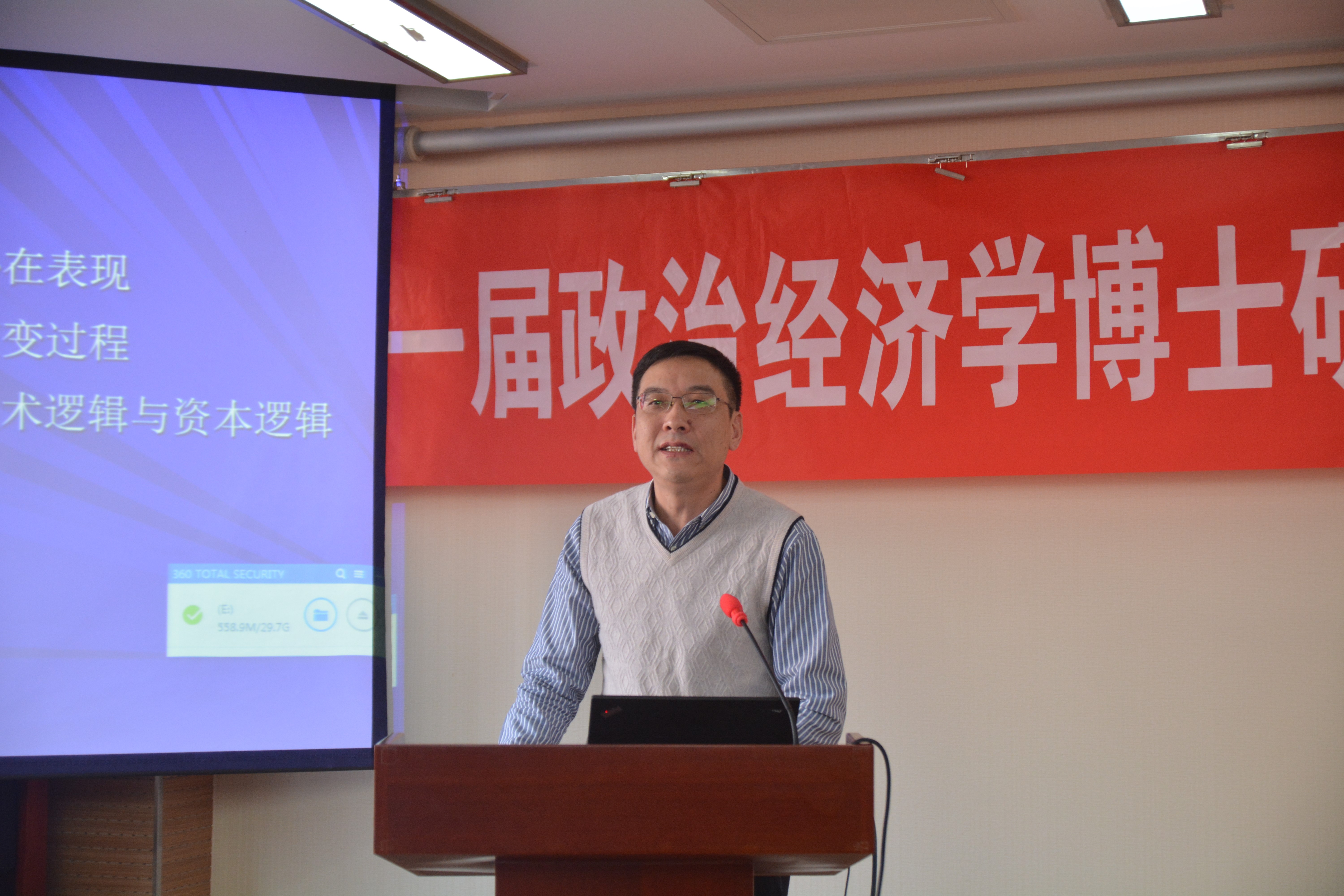 随后,本次研讨会的发起人邱海平教授致辞。邱海平教授详细地阐释了本次研讨会的性质和目的。他认为,如何选择研究内容是论文写作的第一个问题,对研究领域和问题的选择直接关系到研究效果。善于发现和提出学术的前沿问题,是一个人学术能力和学术素质的体现。邱海平教授对政治经济学博士生寄予厚望,希望能借此活动引导博士生写出扎实的学术论文。