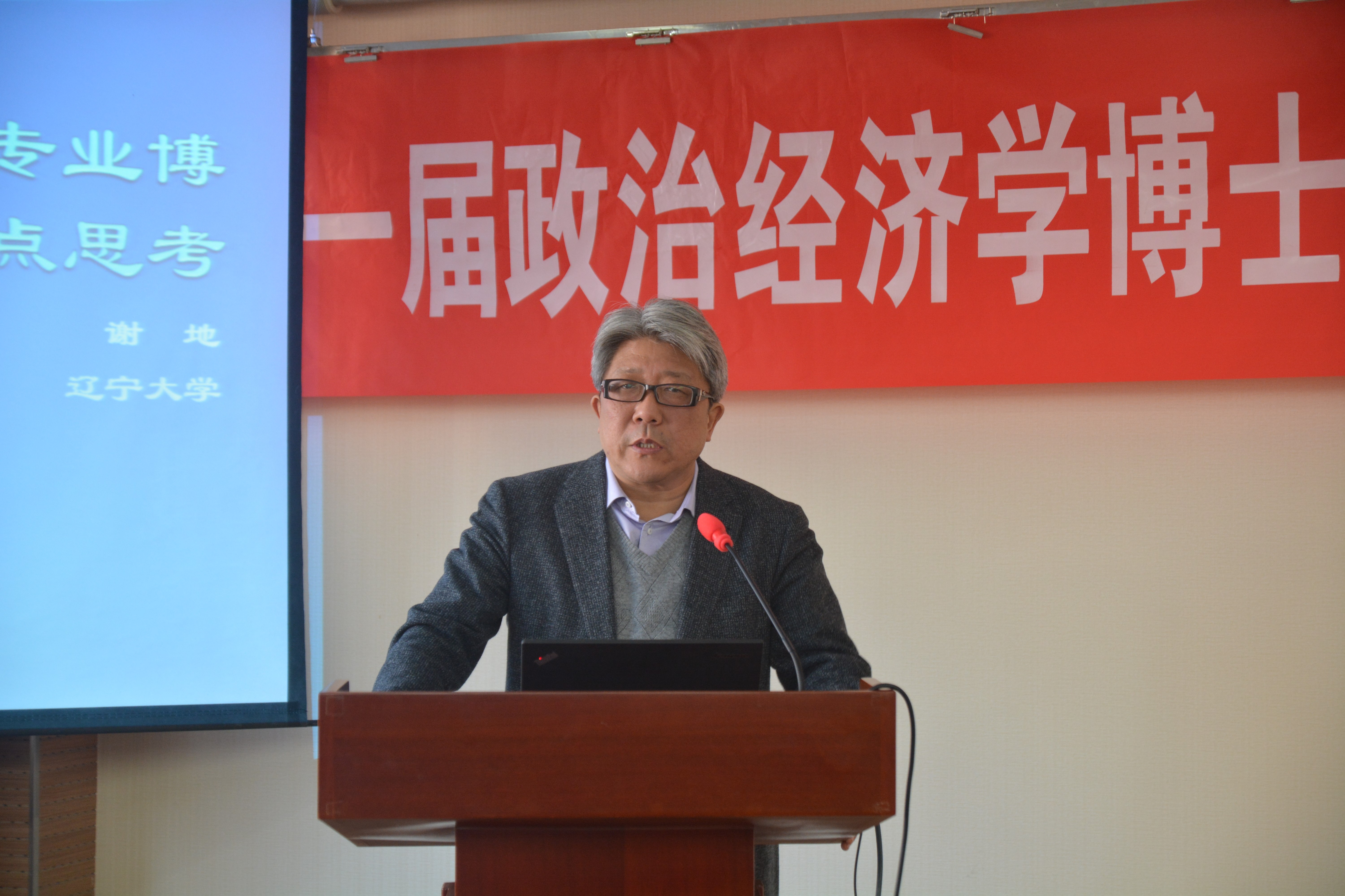 辽宁大学谢地教授首先展示了中国经济学科体系理论基础演变的源流,并指出,随着十八大以来政治经济学的话语权增强,政治经济学在应用经济学的二级学科中发出声音已成为一种必要。紧接着,他从选题范围、研究范式、研究方法三方面出发提出了论文选题写作的要求。他指出,以生产关系、经济利益关系和经济规律为研究对象并揭示背后的经济规律,是政治经济学与其他学科选题的根本区别。