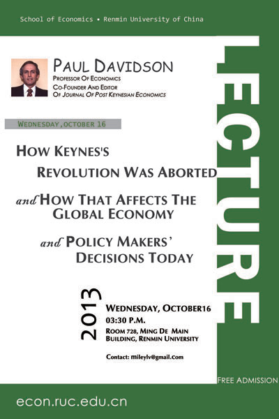 [人大经济论坛]后凯恩斯学派领军人物之一Paul Davidson教授学术报告会