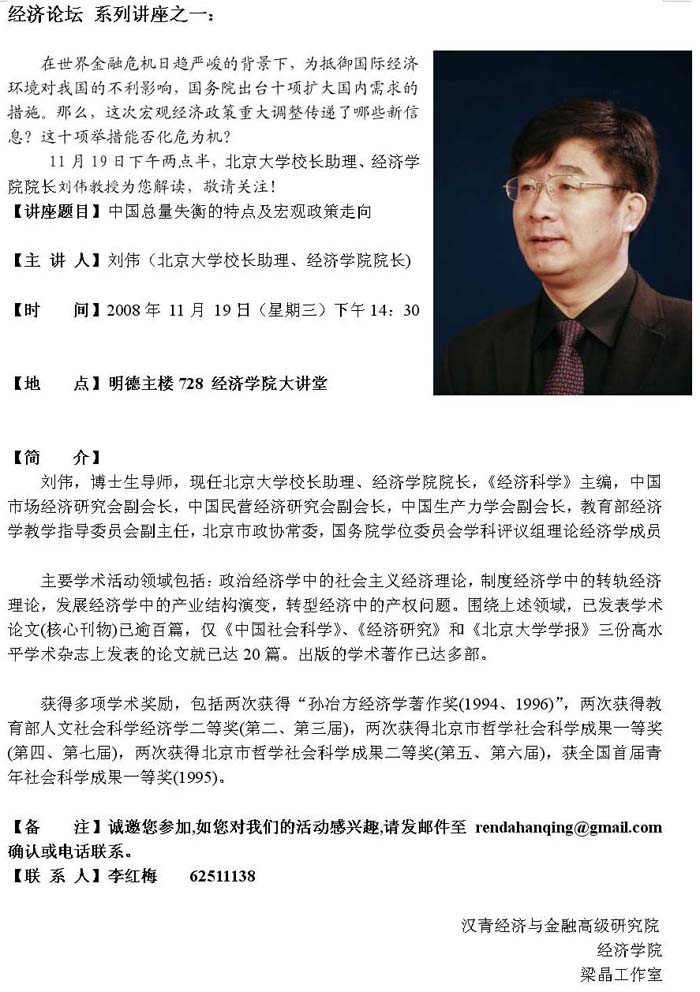 11月19日刘伟教授讲座之中国总量失衡的特点及宏观政策走向