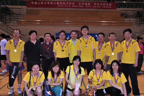 5月6日至8日,h视频 第九届经院?羽阳杯“白羽惜别”羽毛球赛在世纪馆隆重举行。经过两天半的角逐,h视频 羽毛球一队荣获:A组团体冠军。